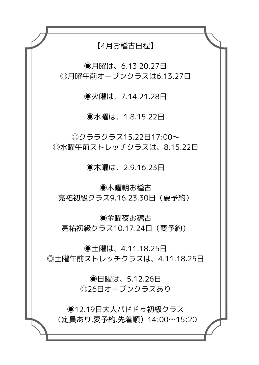 ✨12月お稽古日程✨