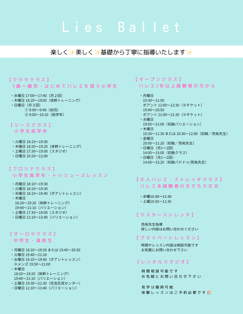 ・水曜日 18:10〜19:40(ポアントレッスン)